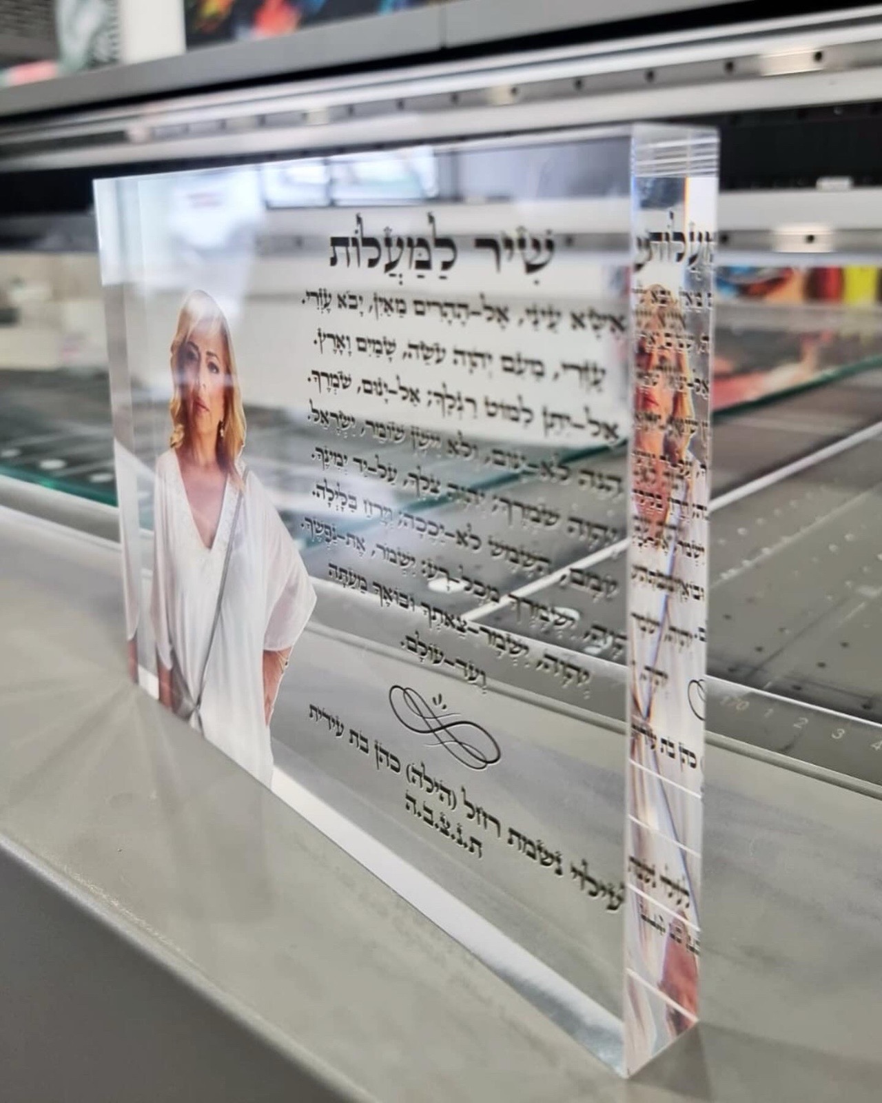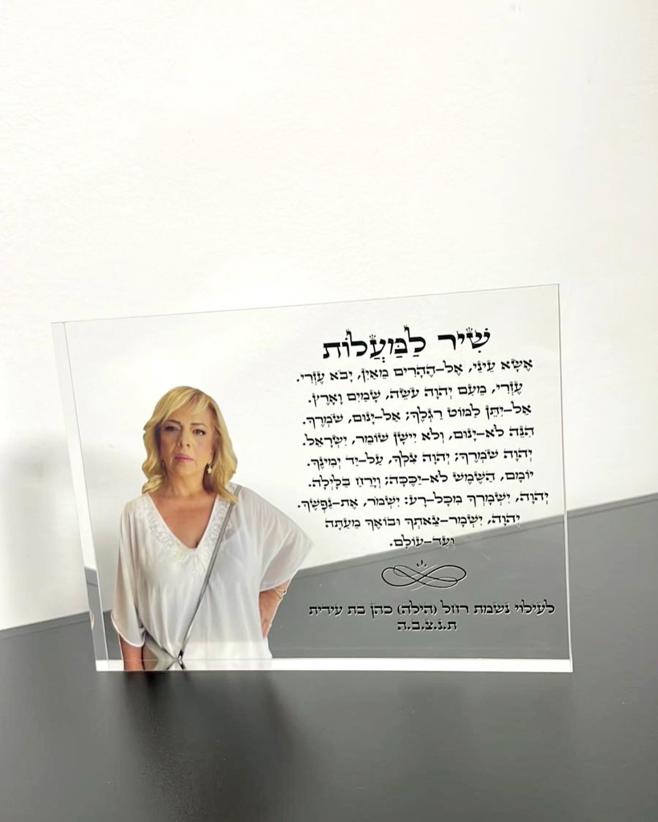 בלוק הנצחה מזכוכית – כולל פרק תהילים והקדשה לעילוי נשמת