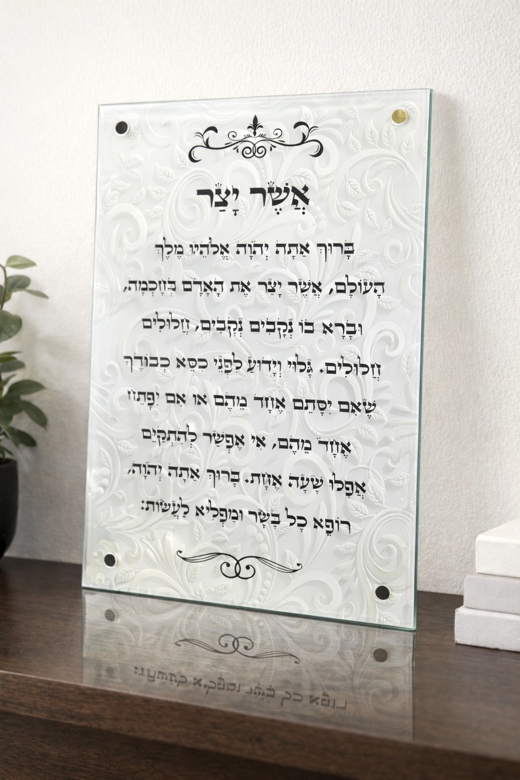 הזכוכית האקסטרה־קליר מעניקה עומק וברק יוקרתי, וההדפסה המדויקת שומרת על טוהר התמונה והמסר הרוחני שבה